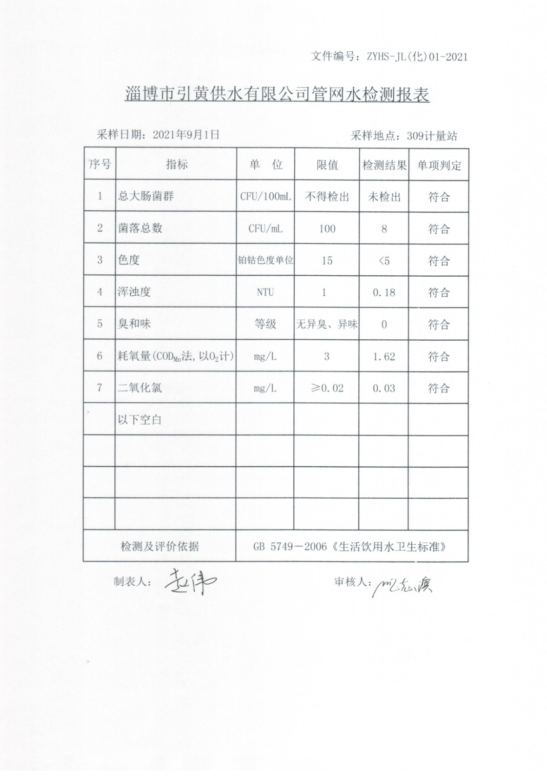 2021年9月水質(zhì)月檢公示 點(diǎn)擊數(shù):0次 發(fā)布時(shí)間:2021-10-14 11:03:55 9月上管網(wǎng)水半月檢7項(xiàng)檢測(cè)匯總表9月下管網(wǎng)水半月檢7項(xiàng)檢測(cè)匯總表南定出廠儷園小區(qū)灃水出廠生活飲用水-配水廠出廠水(全分析)生活飲用水-周村計(jì)量站水世紀(jì)花園生活飲用水-齊魯進(jìn)水四砂生活區(qū)體育中心