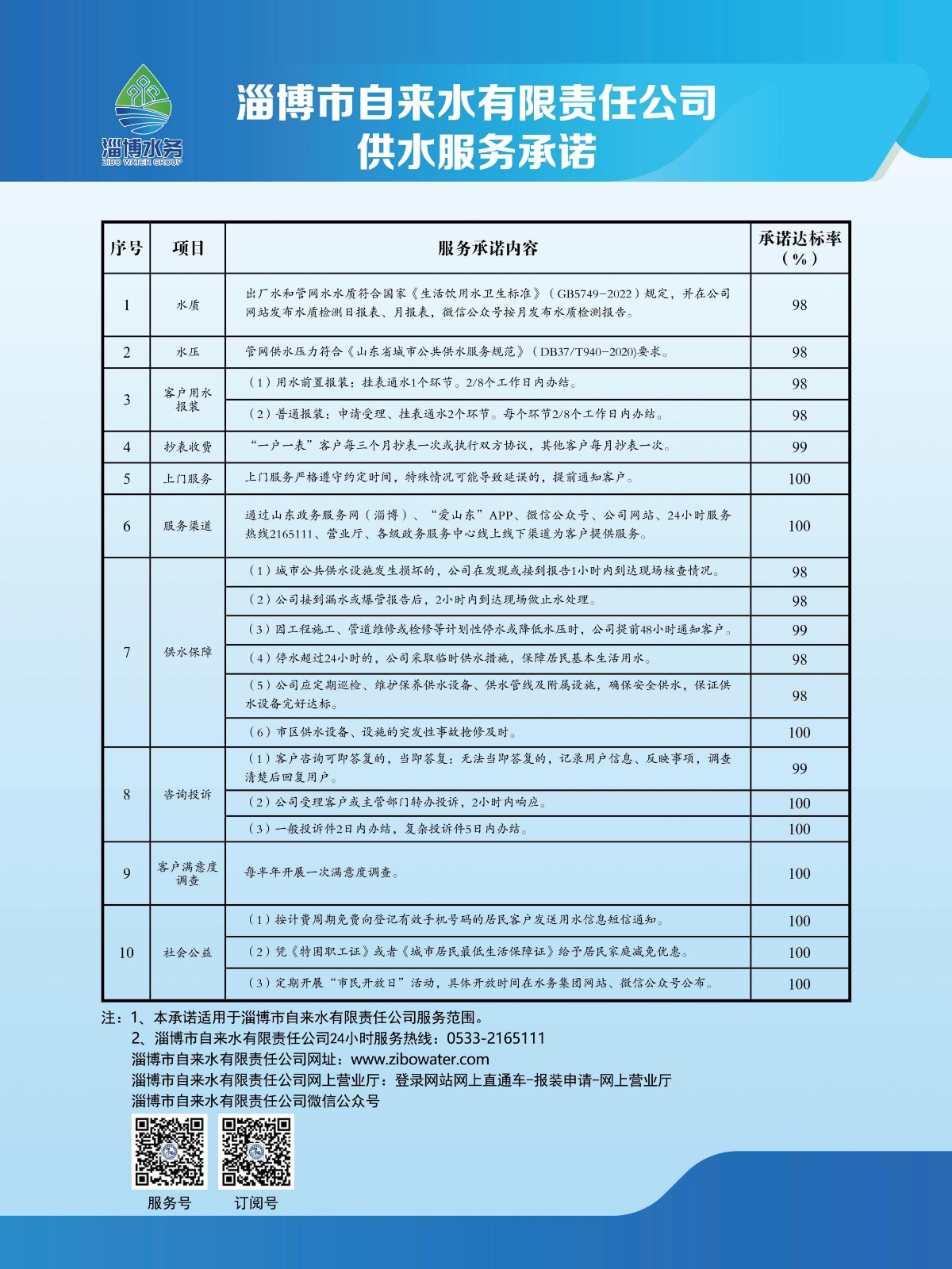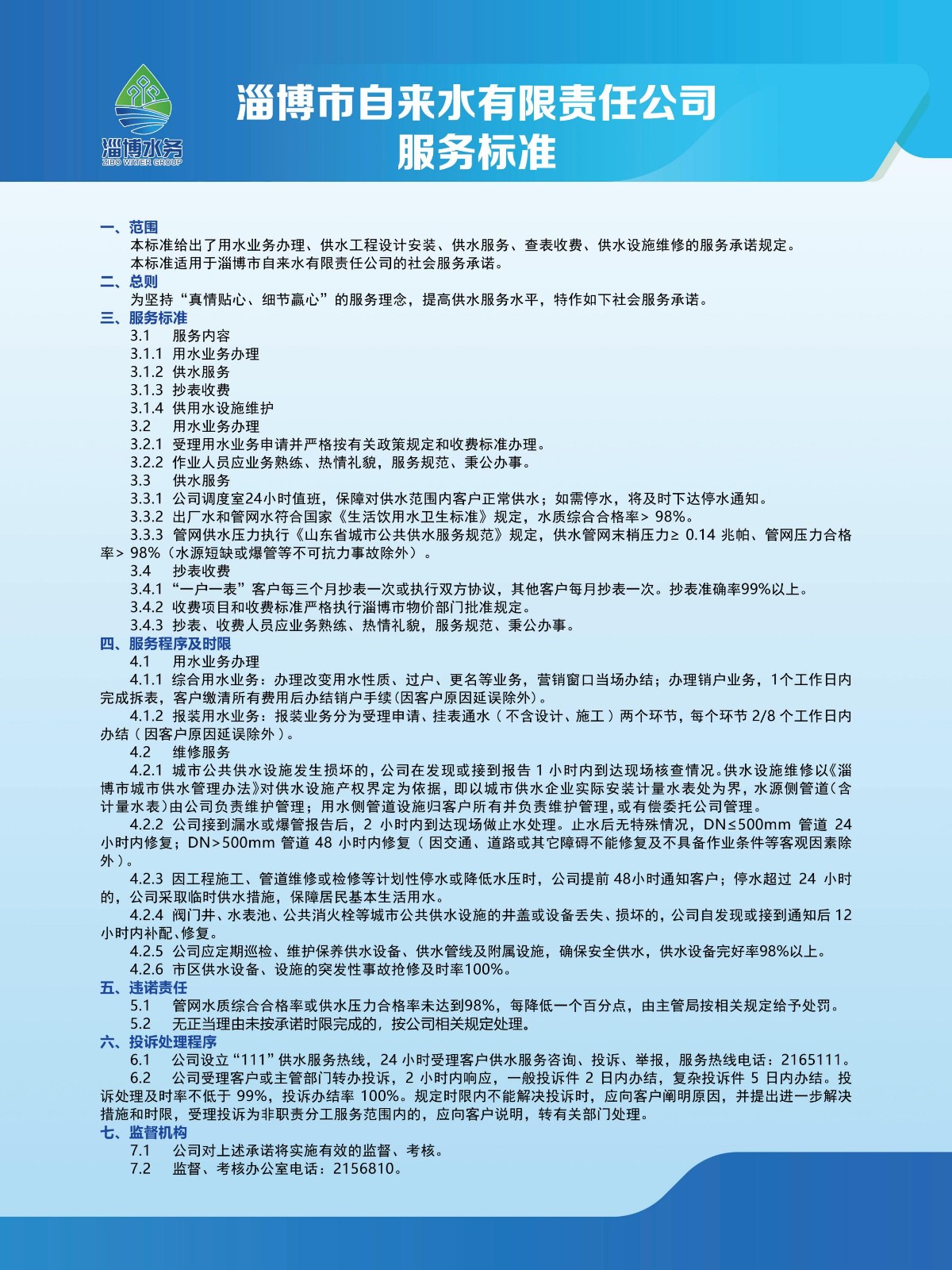 淄博市自來(lái)水有限責(zé)任公司供水服務(wù)標(biāo)準(zhǔn)、服務(wù)承諾 點(diǎn)擊數(shù):0次 發(fā)布時(shí)間:2025-01-22 08:49:10